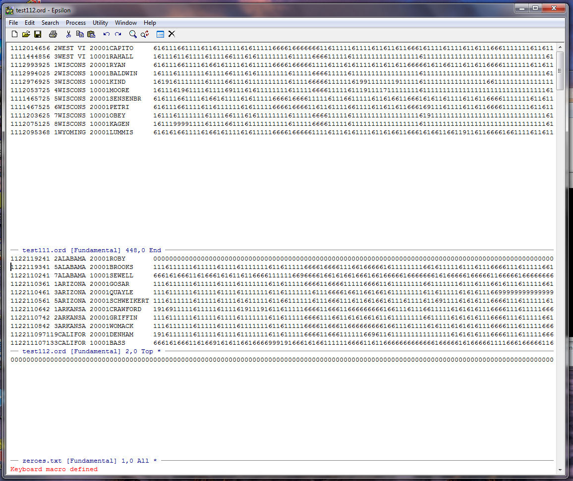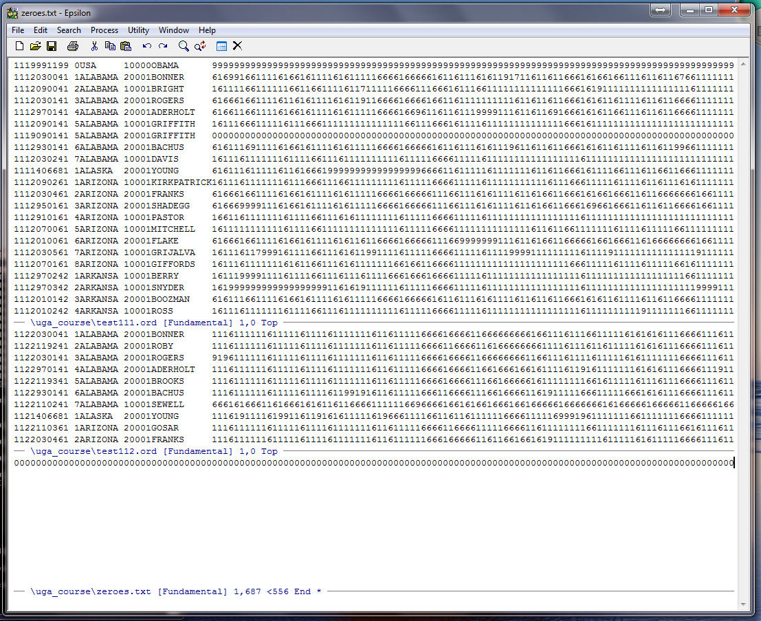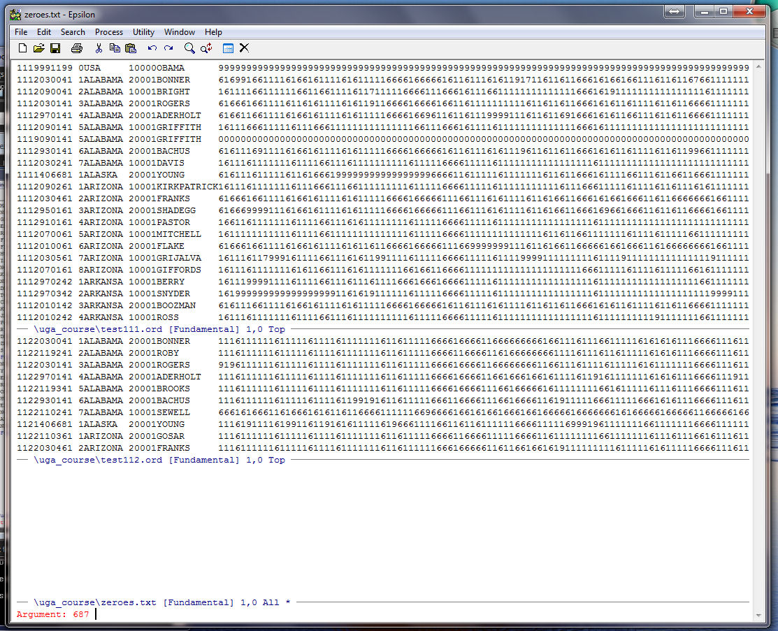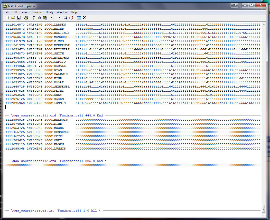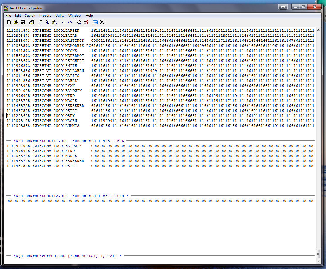 Note that Epsilon tells us at the bottom of the zeroes.txt window that our string of
