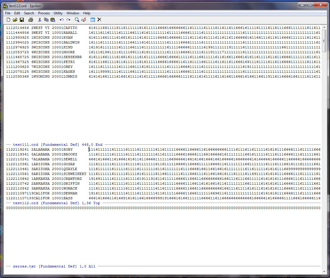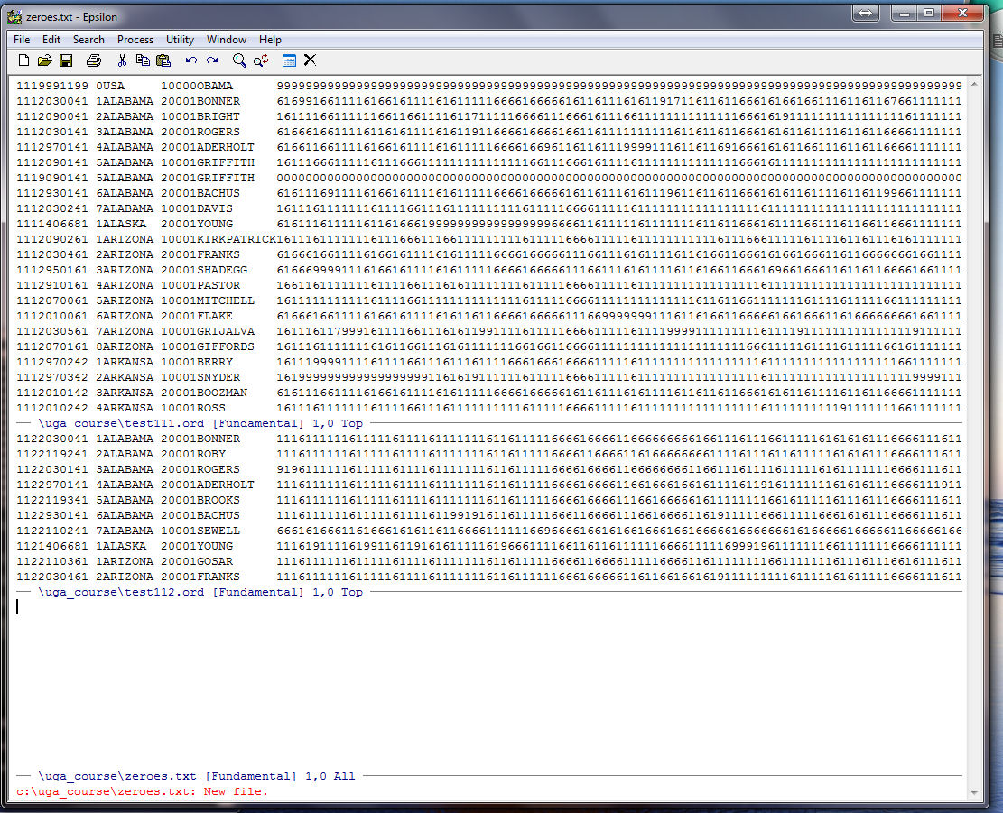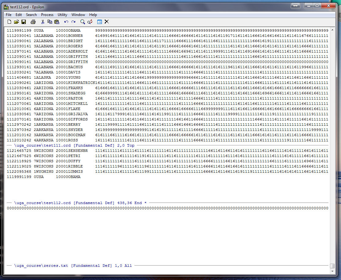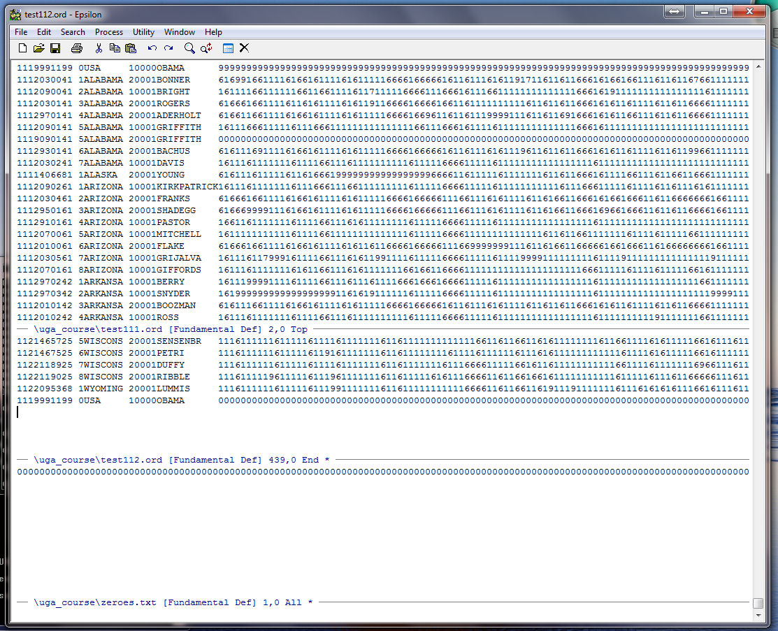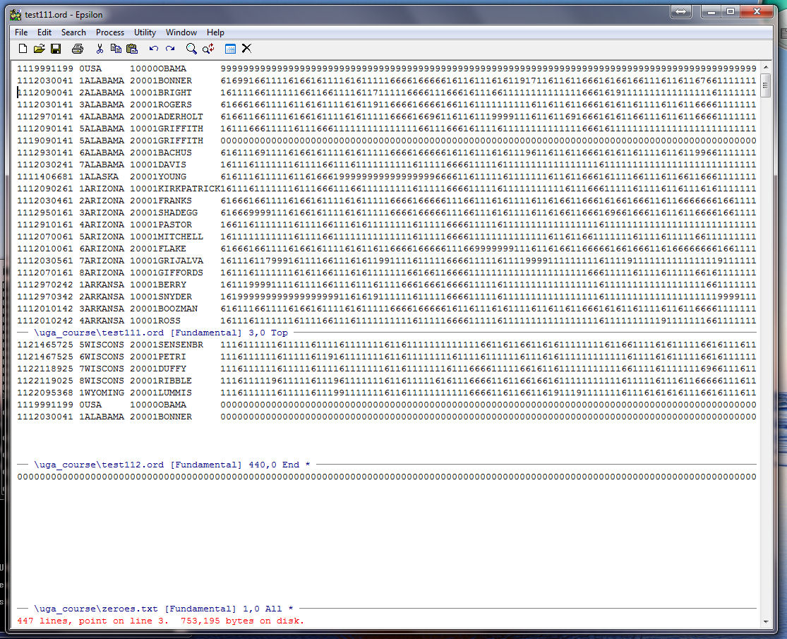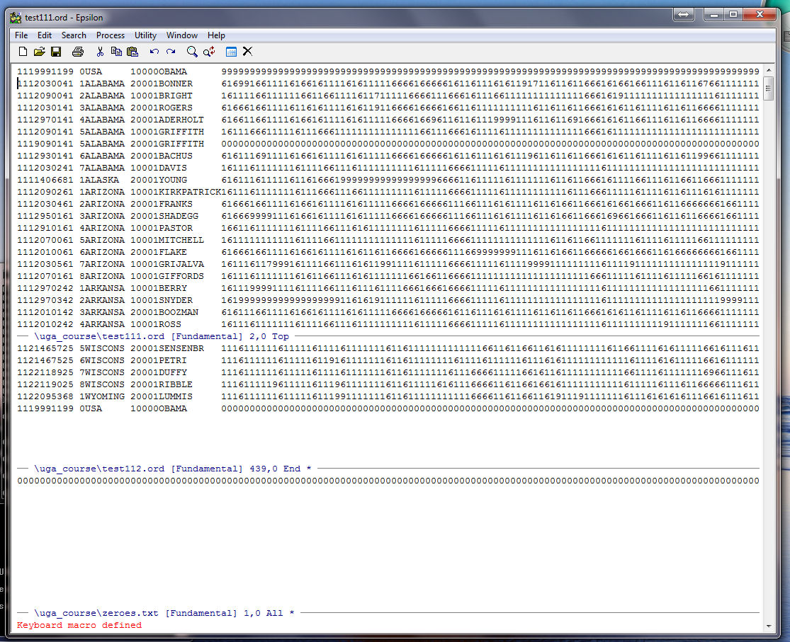 Note that Epsilon tells us at the bottom of the zeroes.txt window that our string of