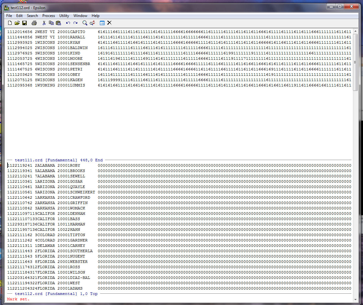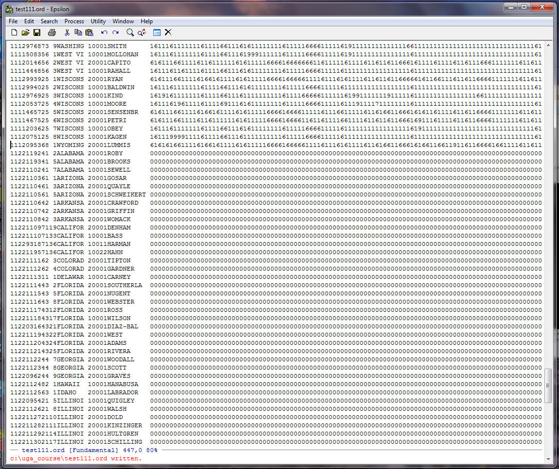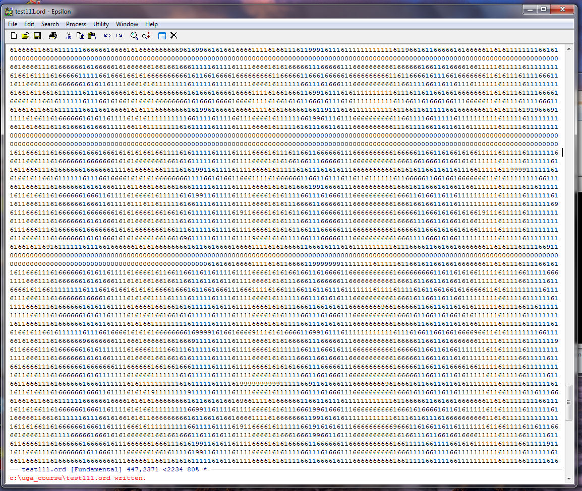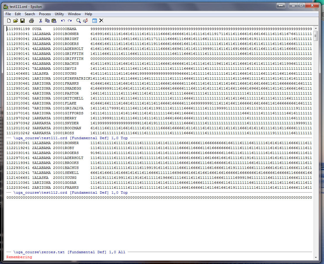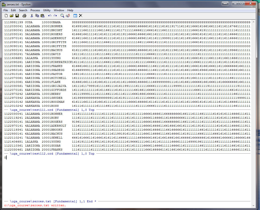 Note that Epsilon tells us at the bottom of the zeroes.txt window that our string of