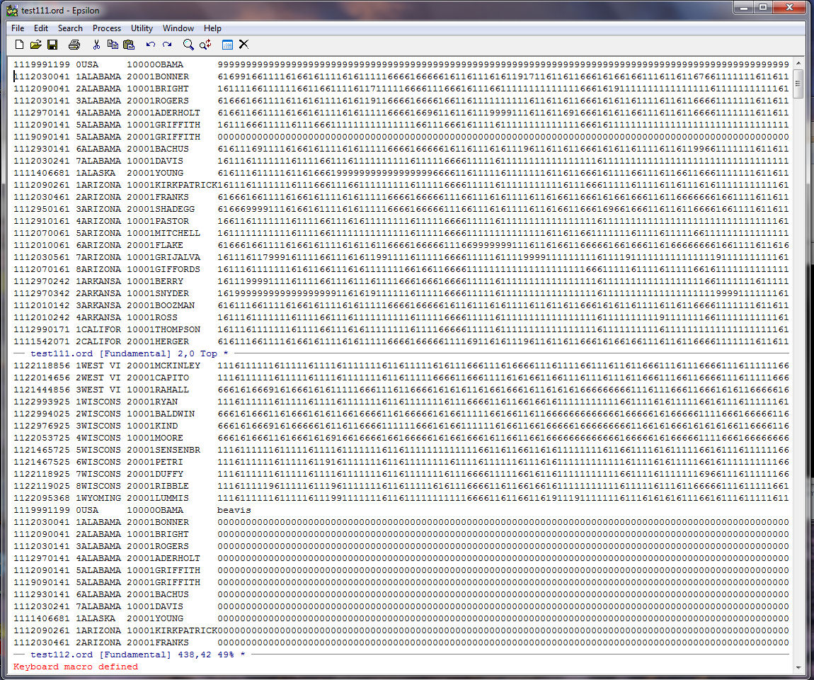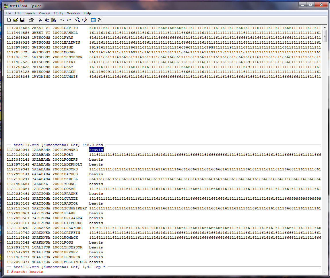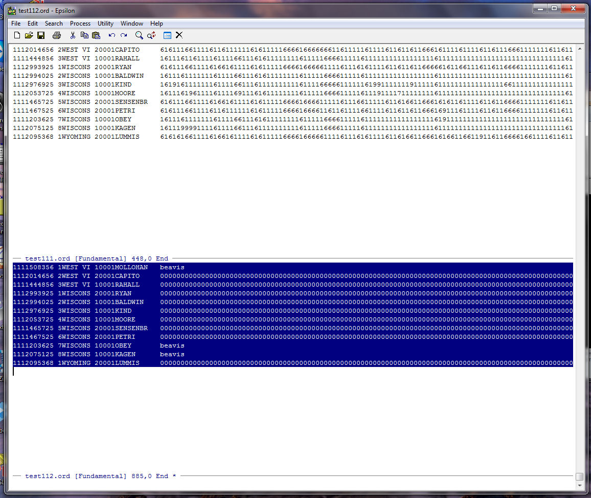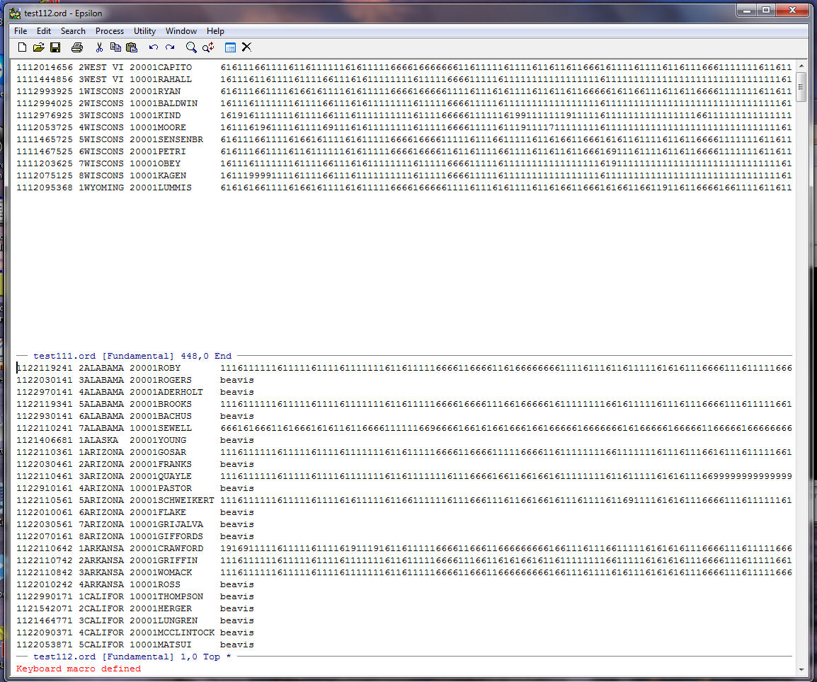 Next we use a keyboard macro to get rid of all the records in TEST112.ORD that contain the word "beavis". This way we