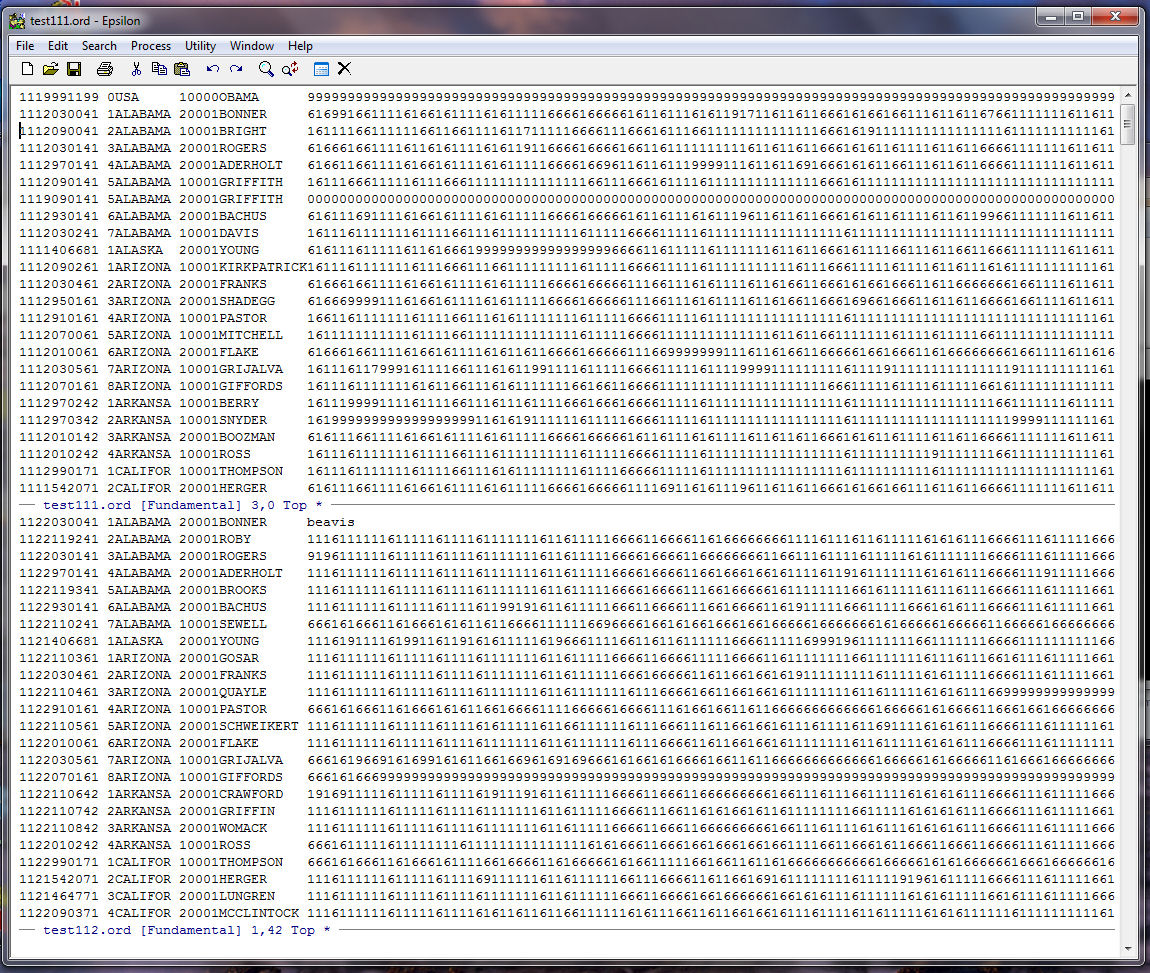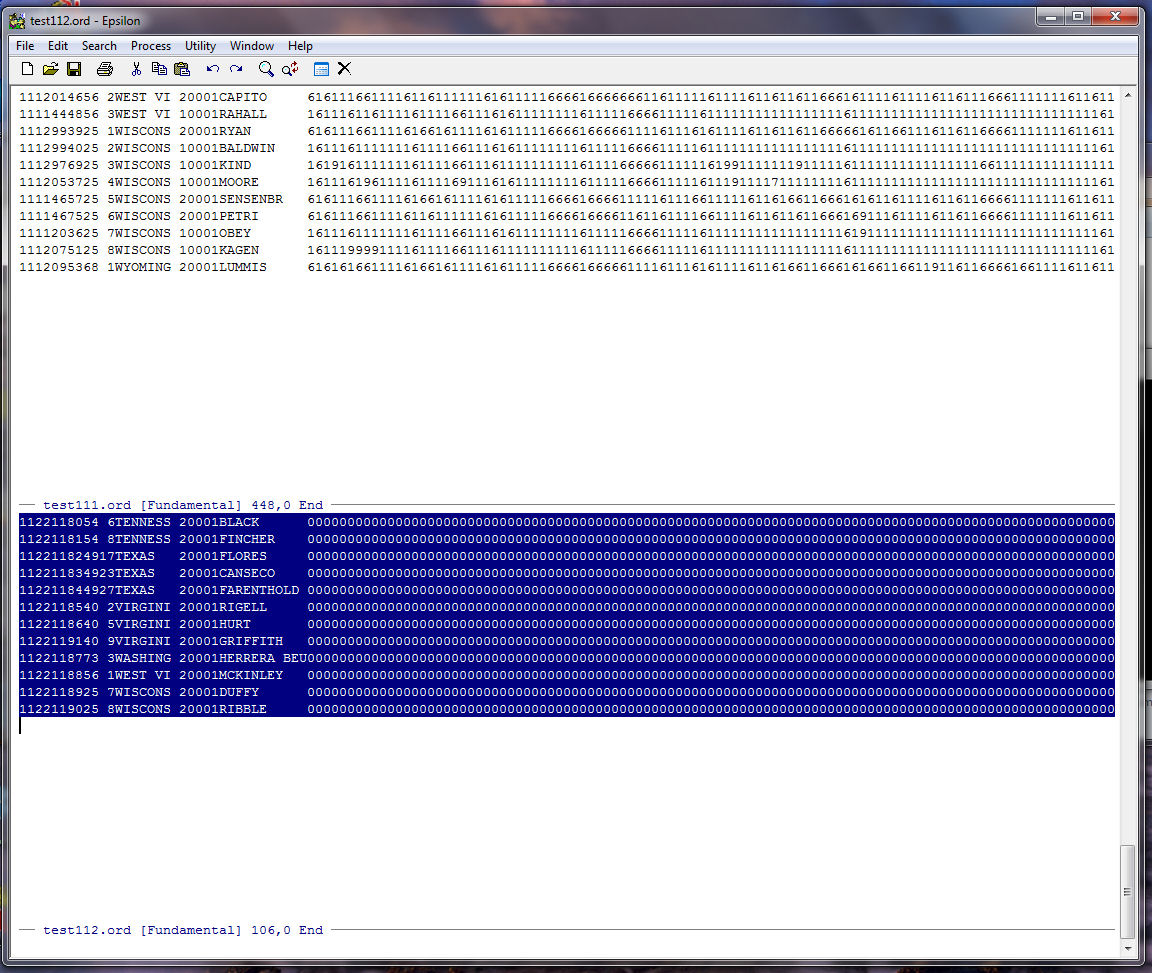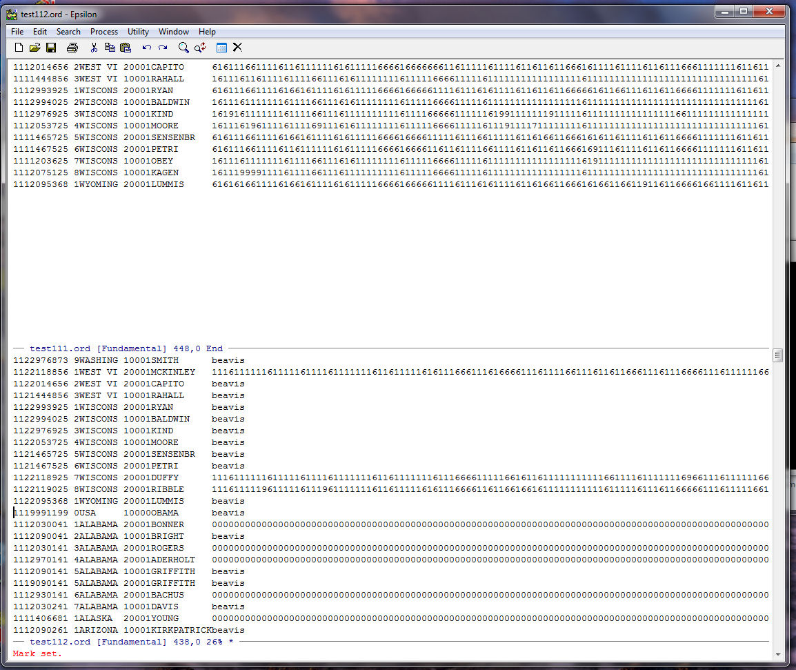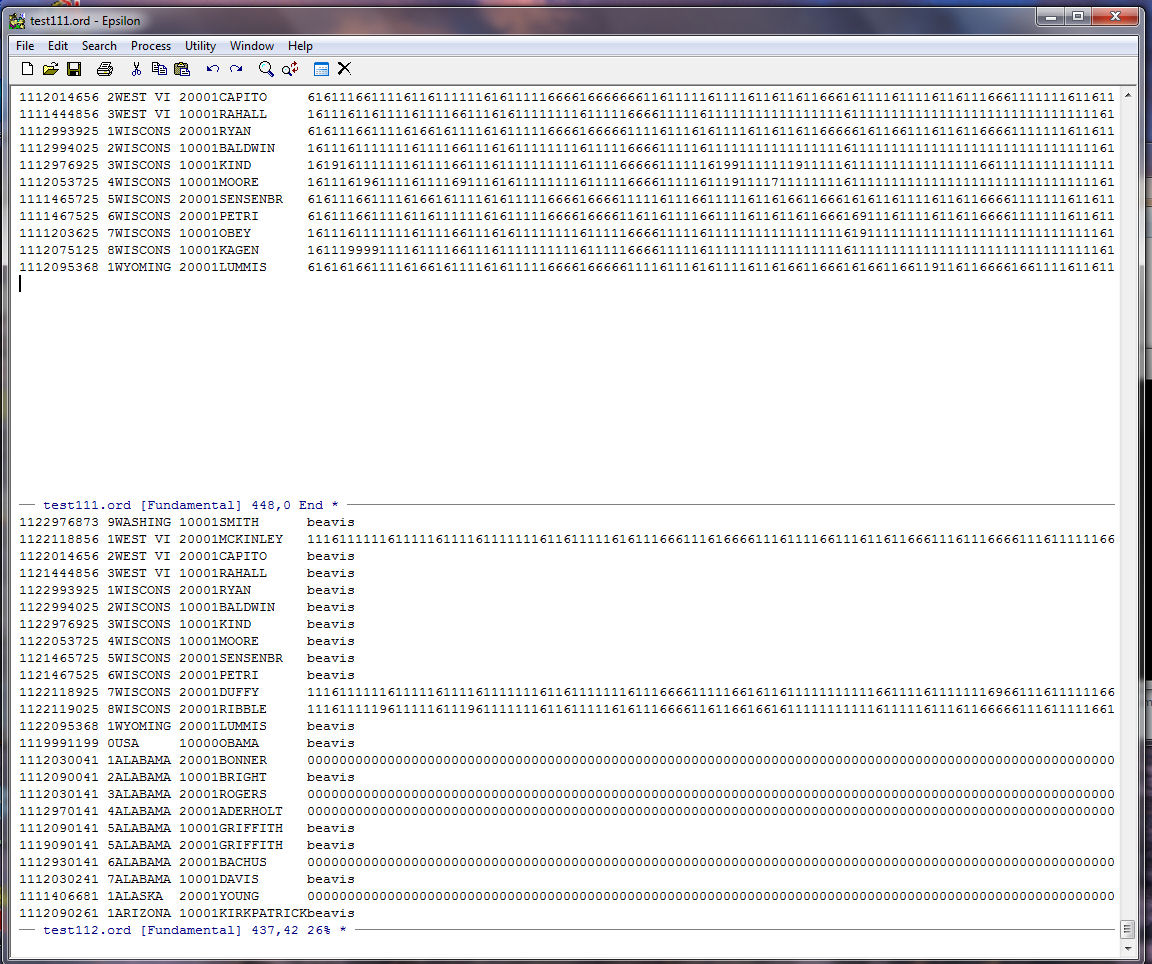Next we use a keyboard macro to get rid of all the records in TEST112.ORD that contain the word "beavis". This way we