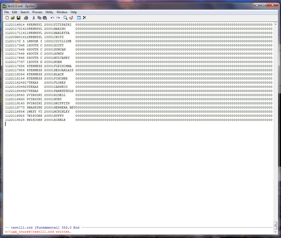 is to create records for all the members of the 111th House and put them on the bottom of TEST112.ORD