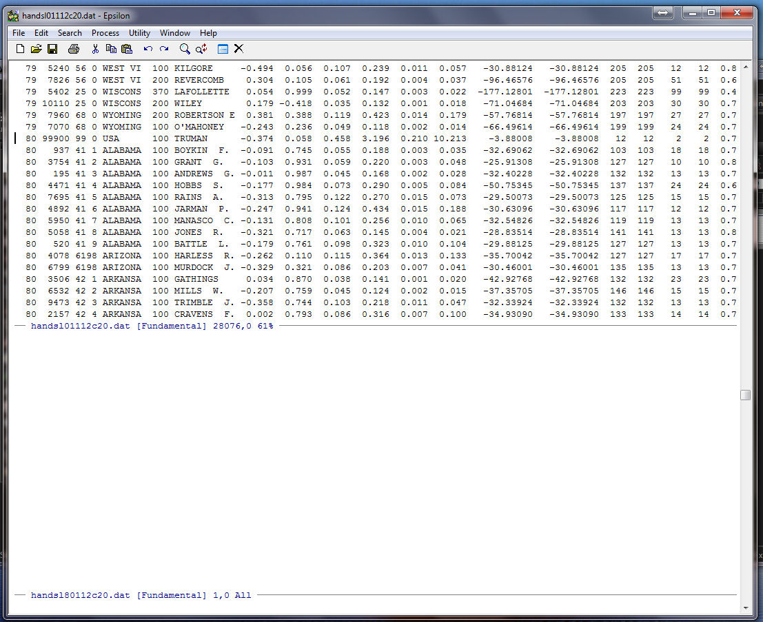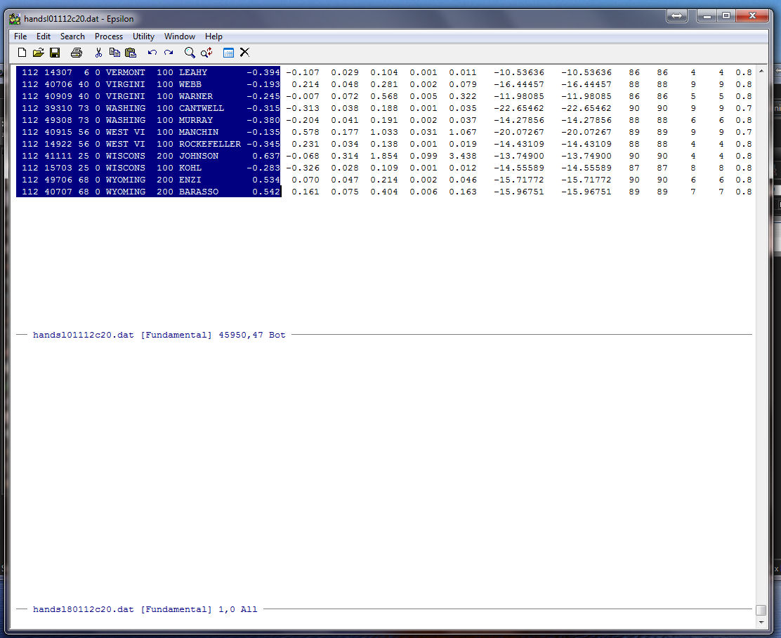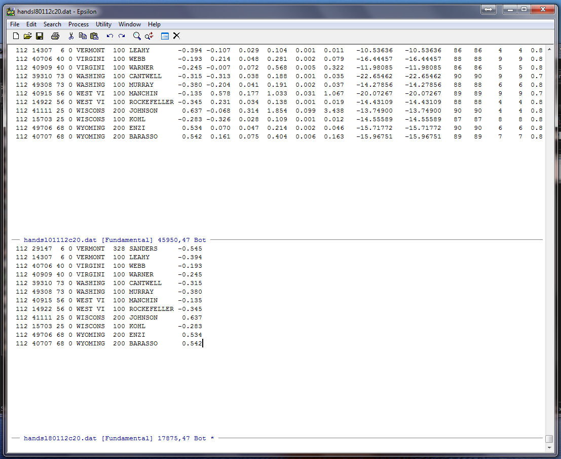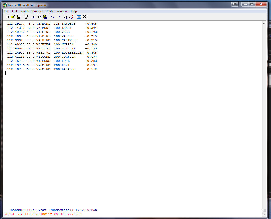 This is the raw legislator output file from DW-NOMINATE. What we are going to do with the