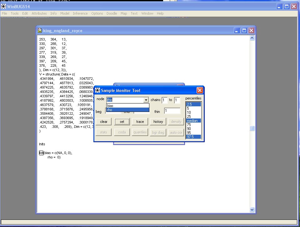 14. [Bring "Sample Monitoring Tool" to front] ® select "rho" ® stats