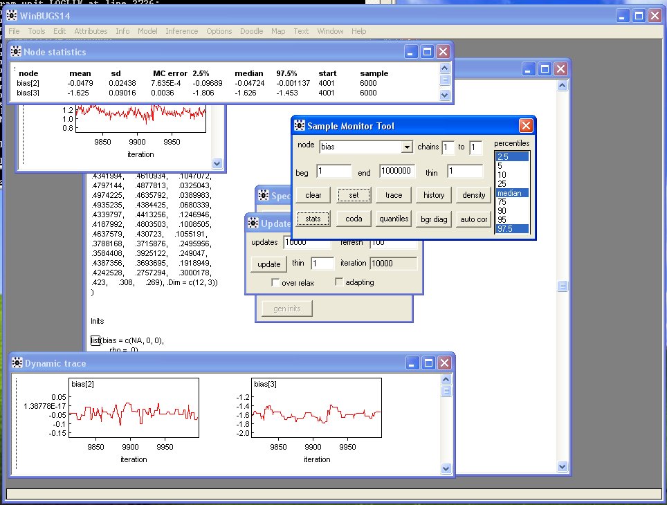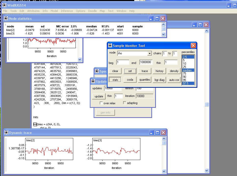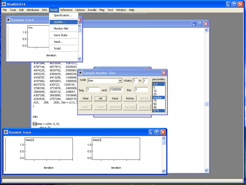 - Select "bias" and click "trace" and it brings up a two panel window that will show the MCMC