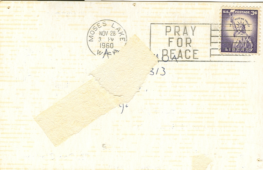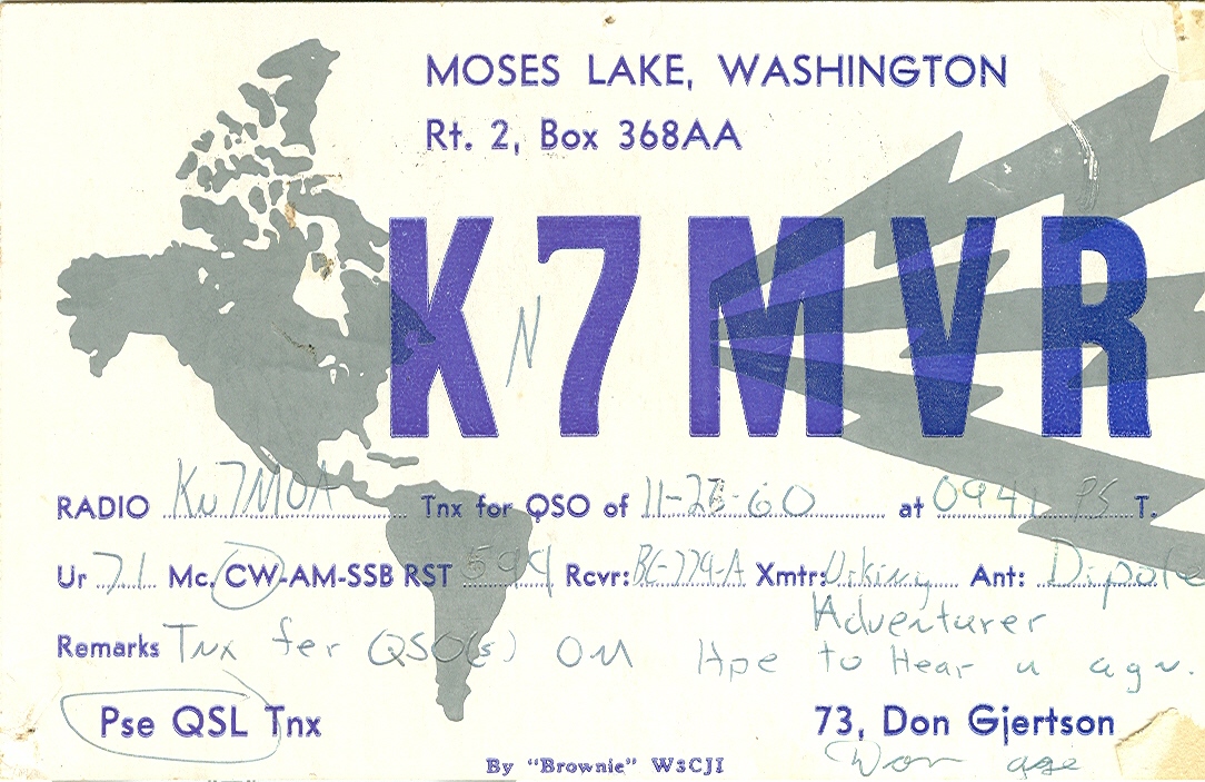 QSL Card for 11 August 1960 QSO with KN7MVR. I was operating from
