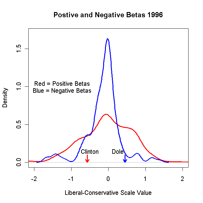 of the Republicans and Democrats in the 104th House using the estimated