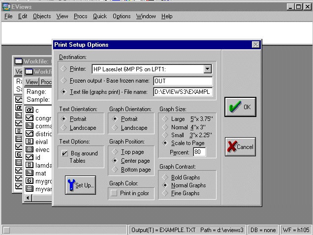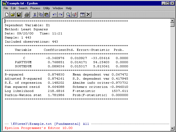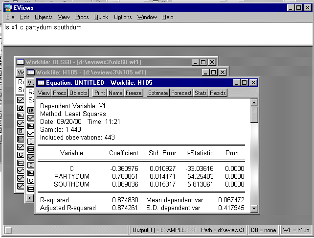 Now click on "Print" and this sends the output to \EVIEWS3\EXAMPLE.TXT.