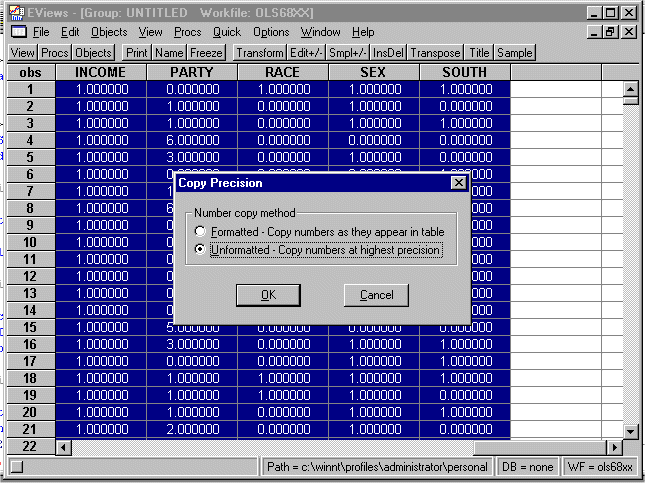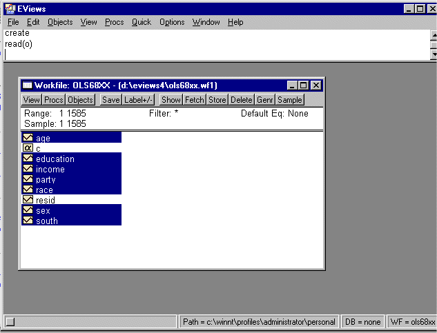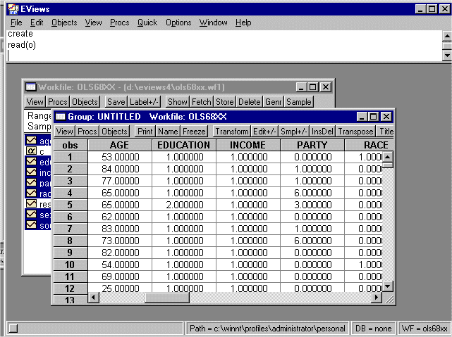 format. (In EVIEWS 4.0 a gray dialog box will pop up first. Select