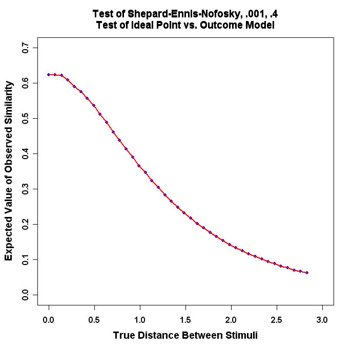 #title(main="Test of Shepard-Ennis-Nofosky, .001, .4\nTest of Ideal Point vs. Outcome Model")