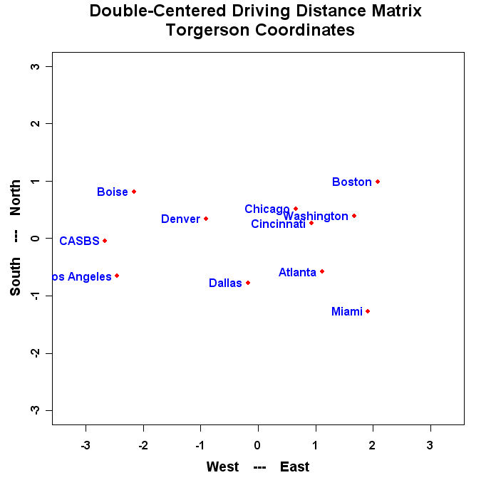 mtext("Double-Centered Driving Distance Matrix \n Torgerson Coordinates",side=3,line=1.25,cex=1.5,font=2)