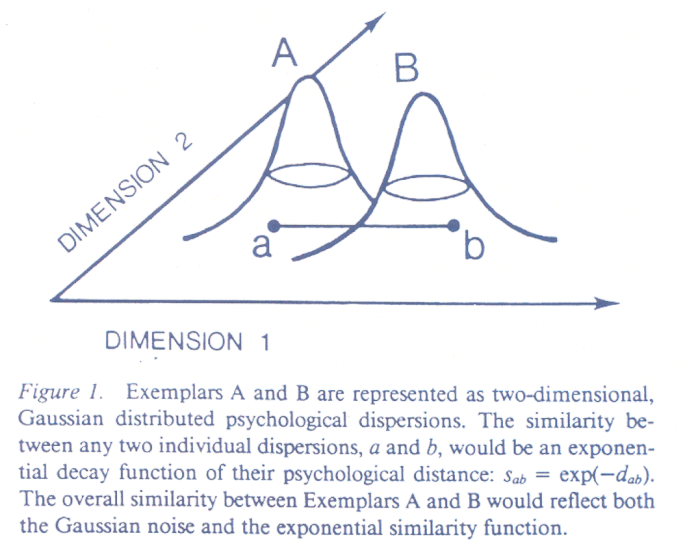 # Exemplars have bivariate normal distributions. One point is