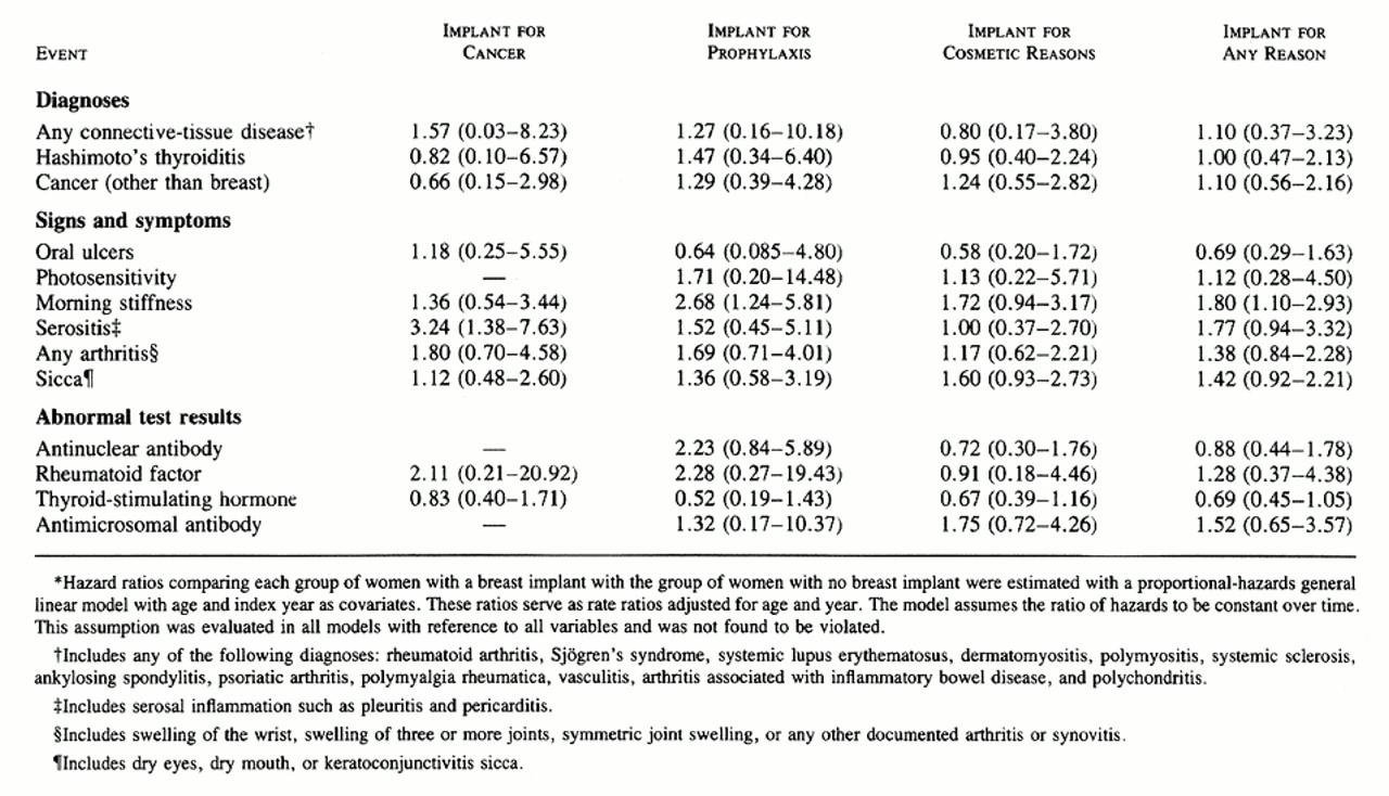 Conclusions We found no association between breast implants and the connective-tissue diseases and other disorders that were studied. .