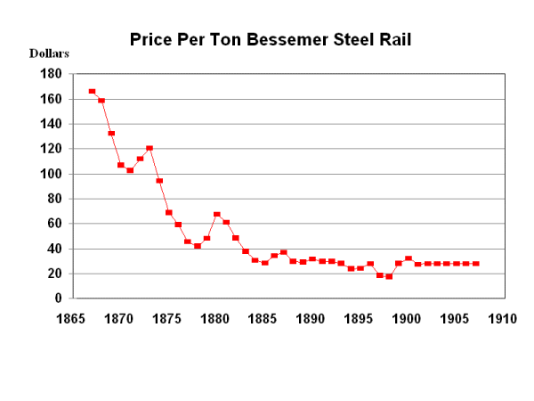 steel greatly increased the productivity of railroads and many other
