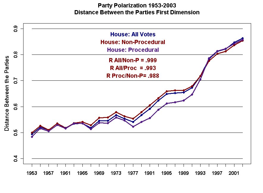 DW-NOMINATE 83-108 on All Votes, Non-Procedural Votes, and Procedural Votes Only, using Rohde Codes --