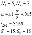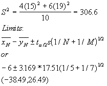 1. GSIA and Pitt students independently take an identical Prob-Stat I final examination. We take a sample 5 Pitt students and 7 GSIA students. The mean score of the 5 Pitt students is 82 points with a standard deviation of 15 points and the mean score of the 7 GSIA students is 88 with a standard deviation of 19 points. Assume that the scores from both schools are normally distributed. Construct 99 percent confidence limits for the difference in the true mean scores.