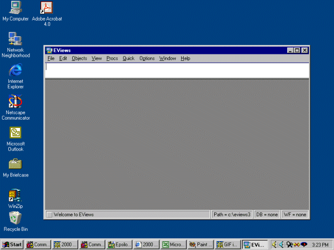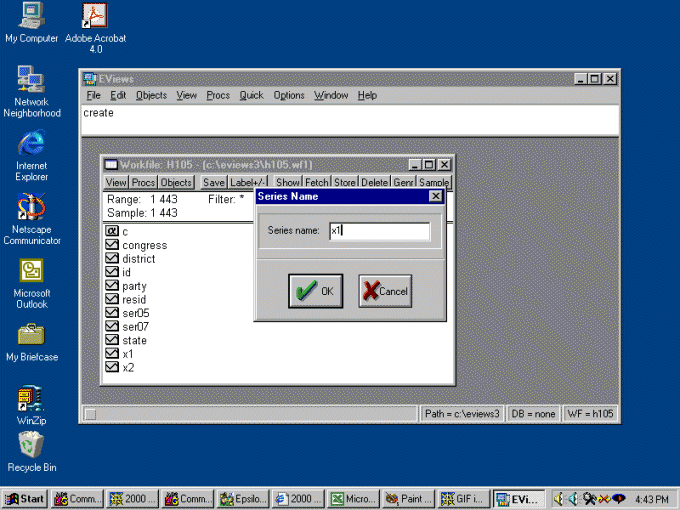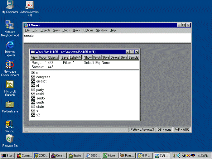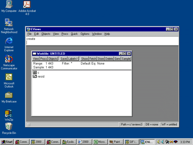 see the basic screen of EVIEWS. Note that our variable names now appear along