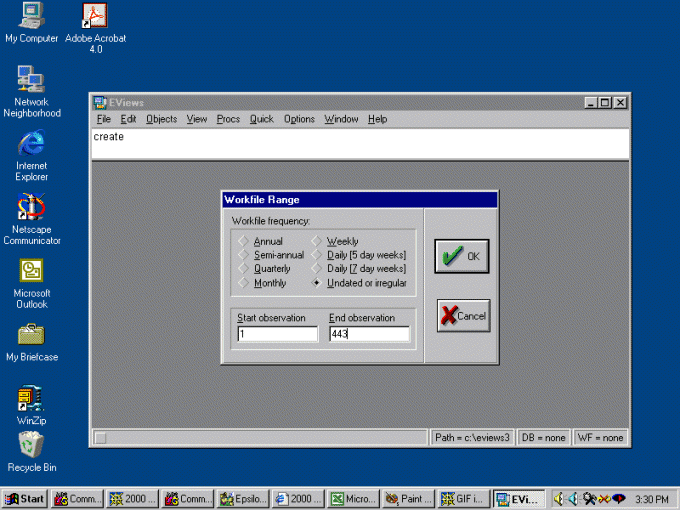 What you have just done is to create an EVIEWS workfile. Every workfile