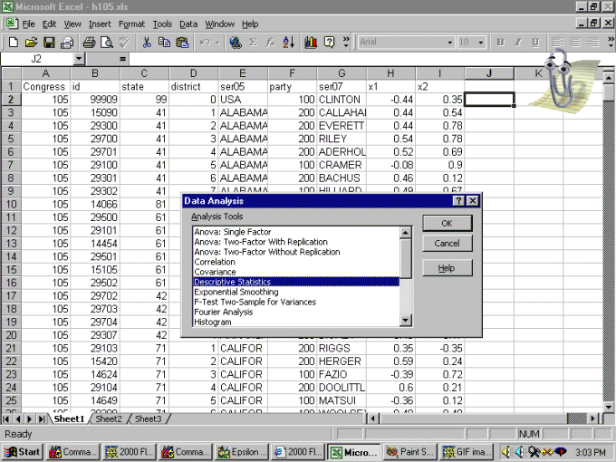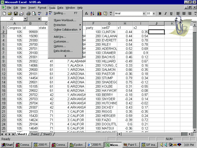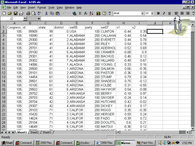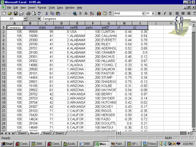 H105.XLS looks like. Note that the first row contains the variable names (these