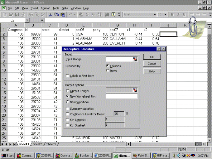 When you select "Descriptive Statistics" a Dialog box comes up (see below).