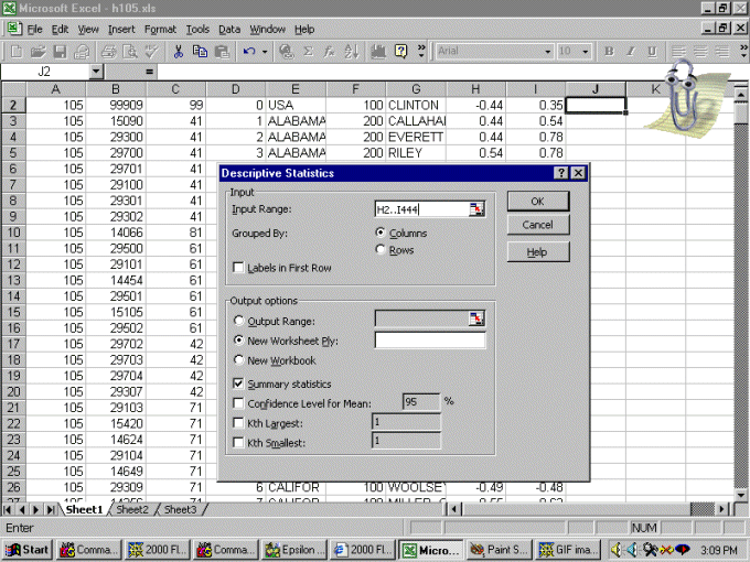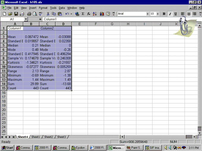 at cell H2 so that when you select H2..I444 ("444" is specific to H105.XLS,
