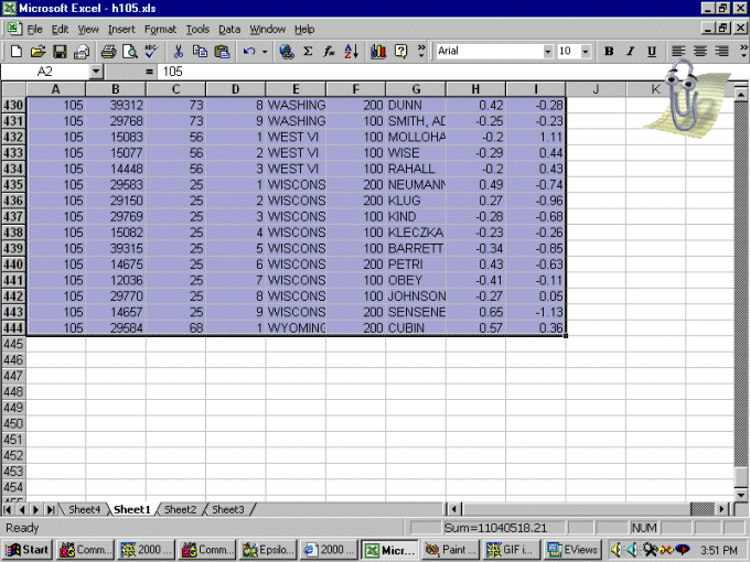 number. In the case of H105.XLS, the last row is 444 for a total of 443