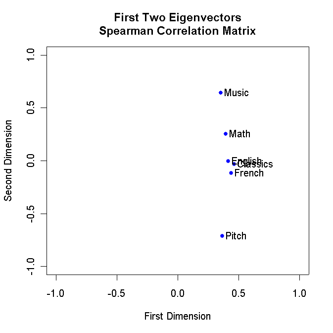Classics 1.00 .83 .78 .70 .66 .63 French .83 1.00 .67 .67 .65 .57 English .78 .67 1.00 .64 .54 .51 Math .70 .67 .64 1.00 .45 .51 Pitch .66 .65 .54 .45 1.00 .40 Music .63 .57 .51 .51 .40 1.00
