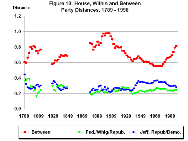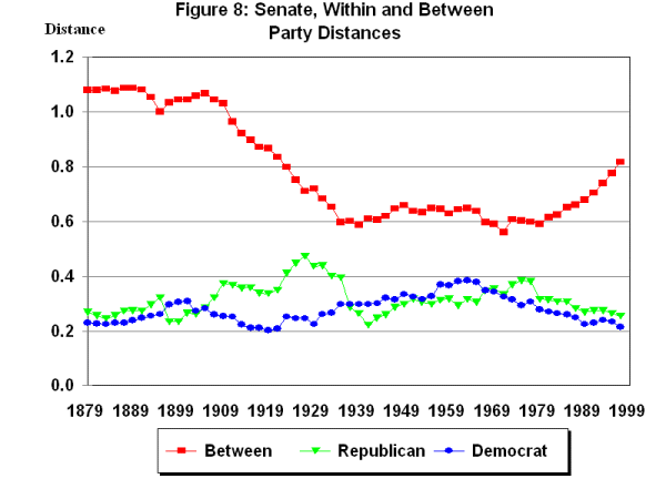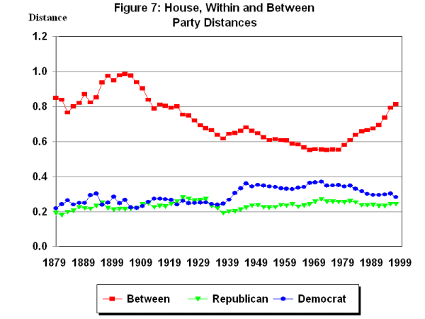 Document the polarization of the Congressional parties for the Post-Reconstruction