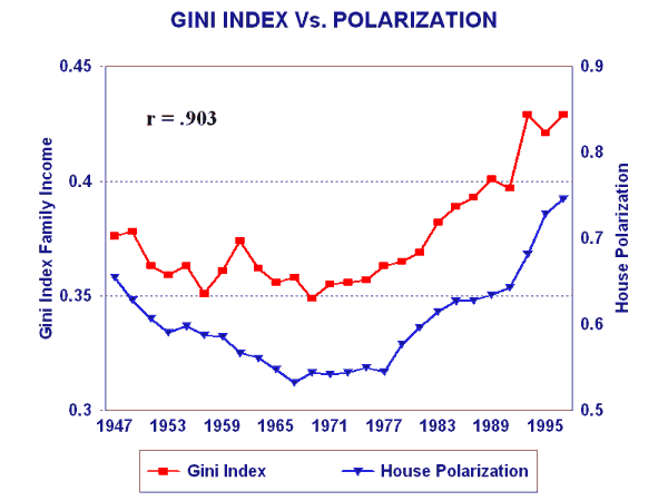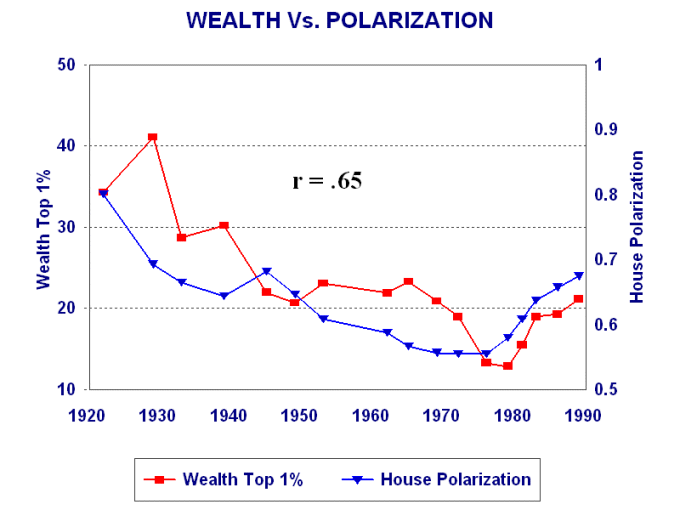 Wealth vs. Polarization -- r = .65. The Wealth data