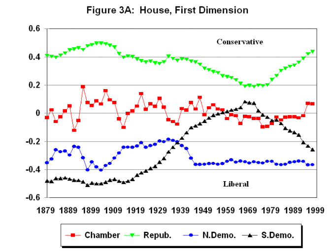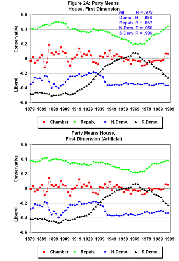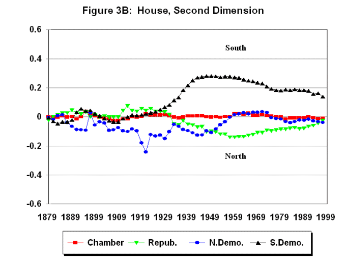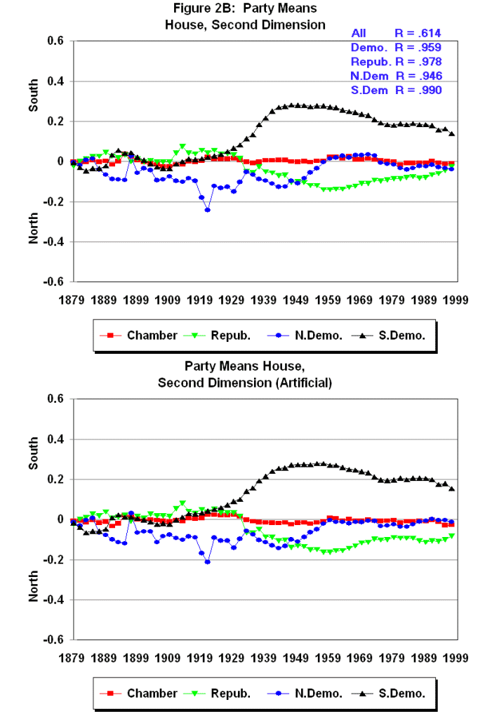To test this, we ran DW-NOMINATE without the Southern States (both Southern