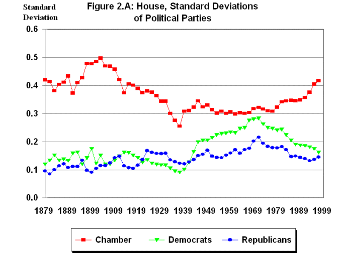 and the two Political Parties -- First DW-NOMINATE dimension only.