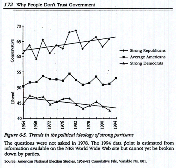 NES and GSS studies, they found that only party identifiers showed an increasing