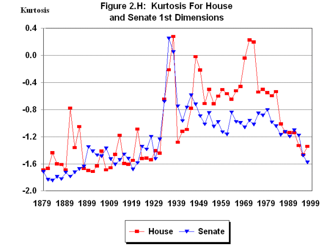 House and Senate Kurtosis of first DW-NOMINATE dimension.