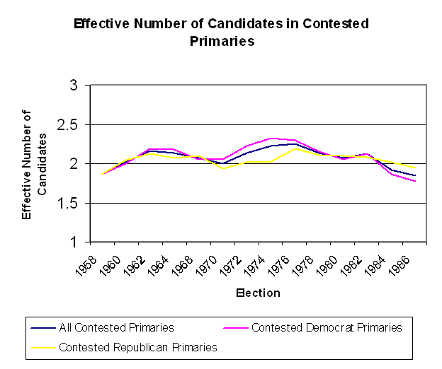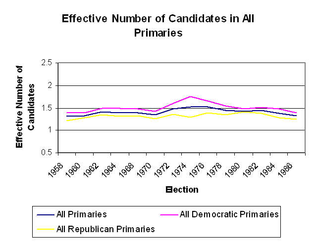 off by 1980 and the effect is only substantial in Democratic primaries.