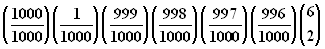13. Suppose we have an urn containing 1000 balls numbered from 000 to 999. Six balls are drawn one at a time from the urn with replacement; that is, a ball is drawn, its numbered noted, and it is placed back in the urn. What is the probability that exactly two of the six numbers are the same and the other four are different.