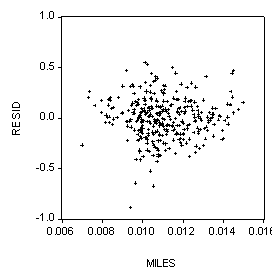 MILES^2 -3898.757 1599.262 -2.437848 0.0153