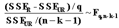 Here, SSEUR is from the full regression, SSER is the regression where the b ’s are constrained to equal 0, and q is the number of restrictions (number of b ’s constrained to equal 0).