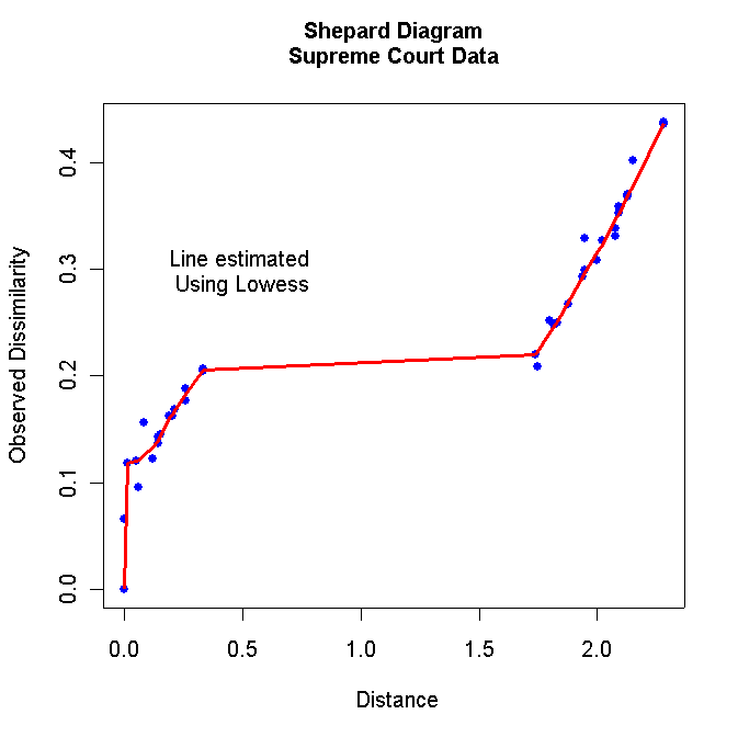 The STRESS value was 0.0098 indicating nearly perfect unidimensionality. Below