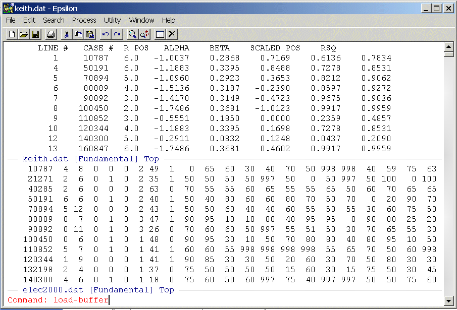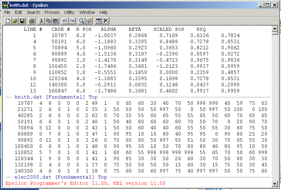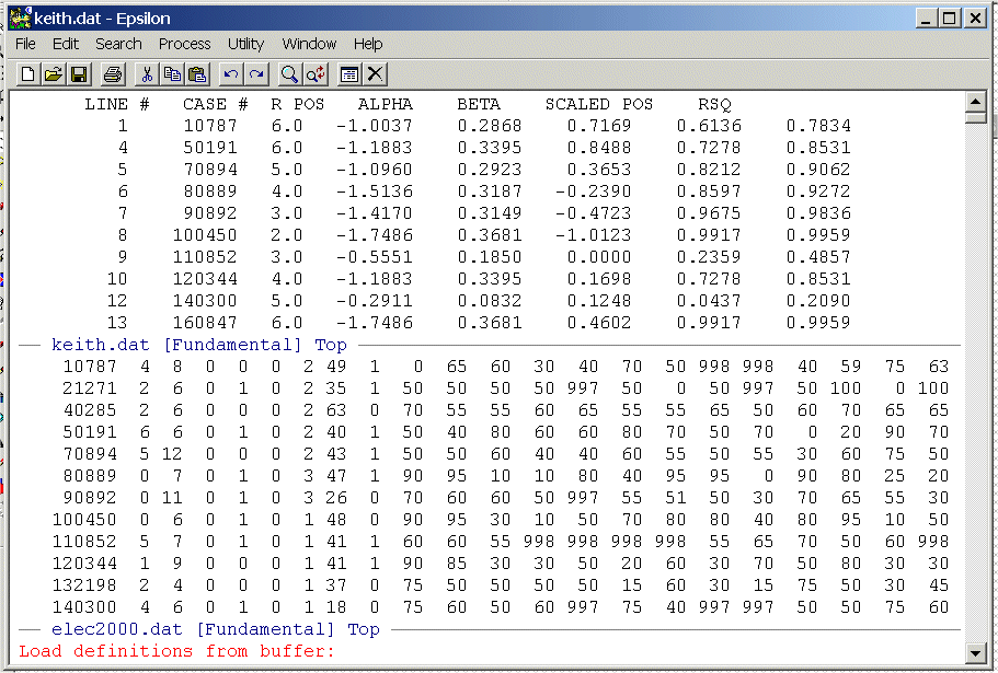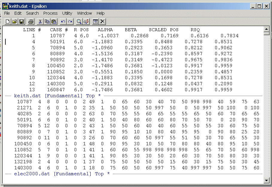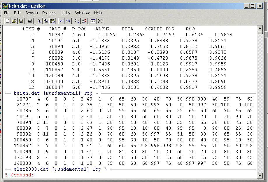 Set up a Split Window and place KEITH.DAT in the top window and