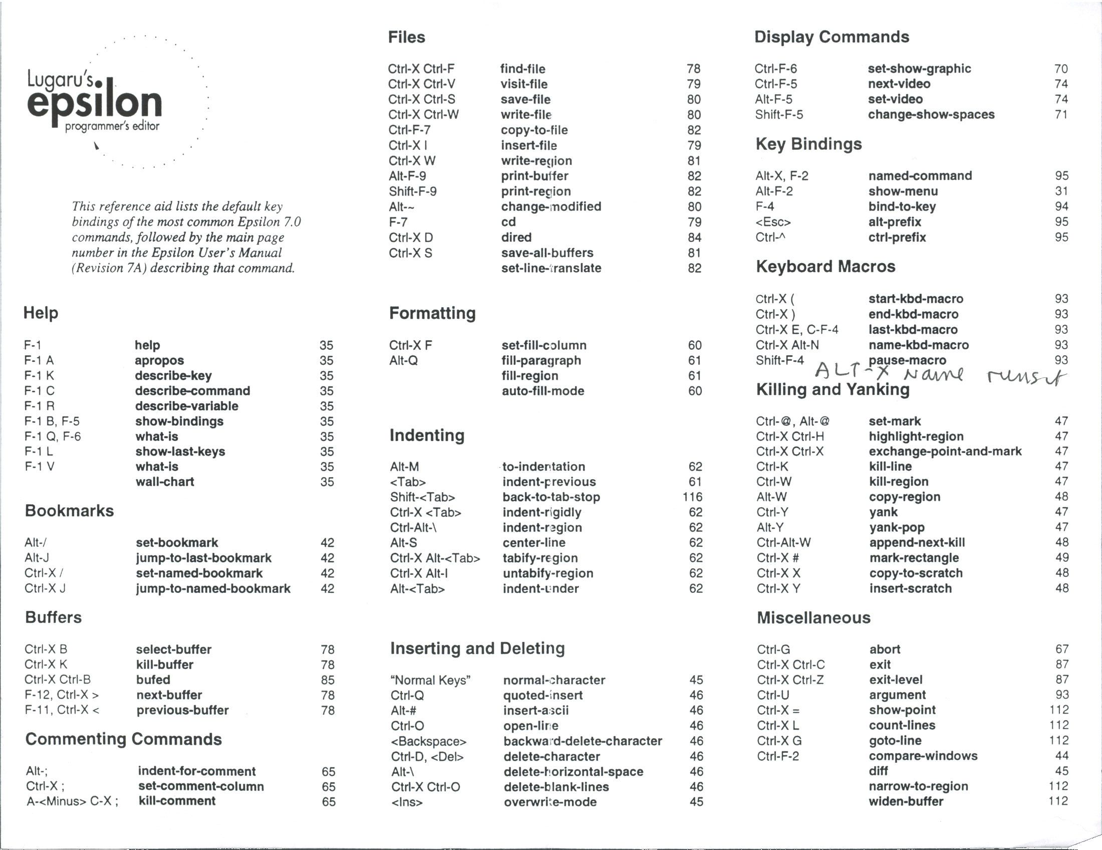 List of Epsilon Commands that can be use in Text Macros